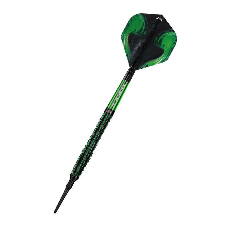 Invade the darting world with the Mission Venom Darts. Made from 90% tungsten and featuring a stunning black PVD and green electro plate coating, the Venom dart will strike fear in every opponent.The barrel includes radial grooves and horizontal milling for an enhanced grip. A straight rear section contours into a front section with a tapered smooth bull nose that tapers to a black point
