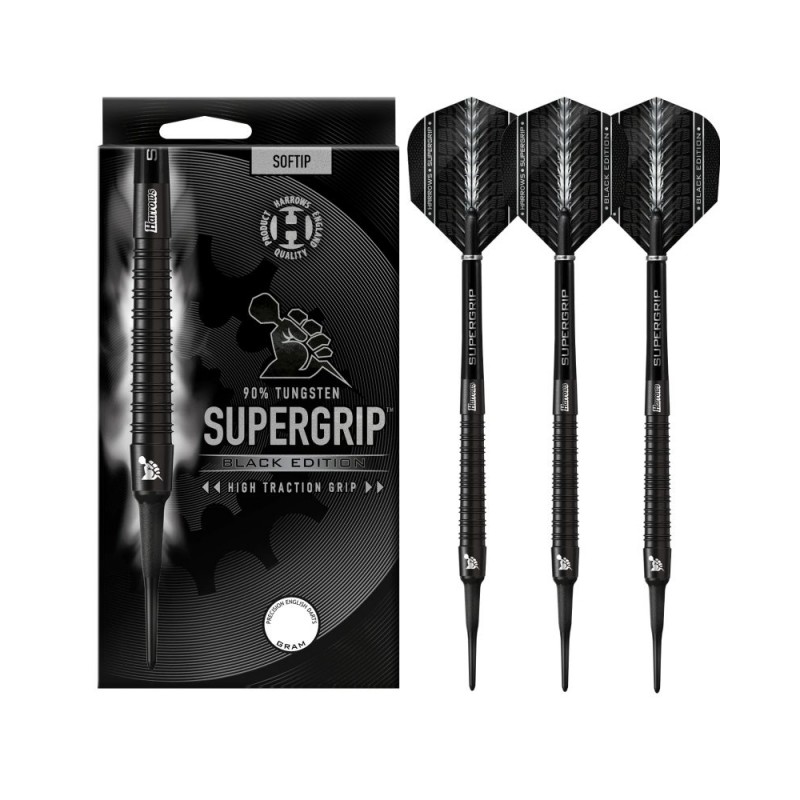 Dardos punta plástico Harrows darts Supergrip Black - 90 % tungsteno 18/20 gr