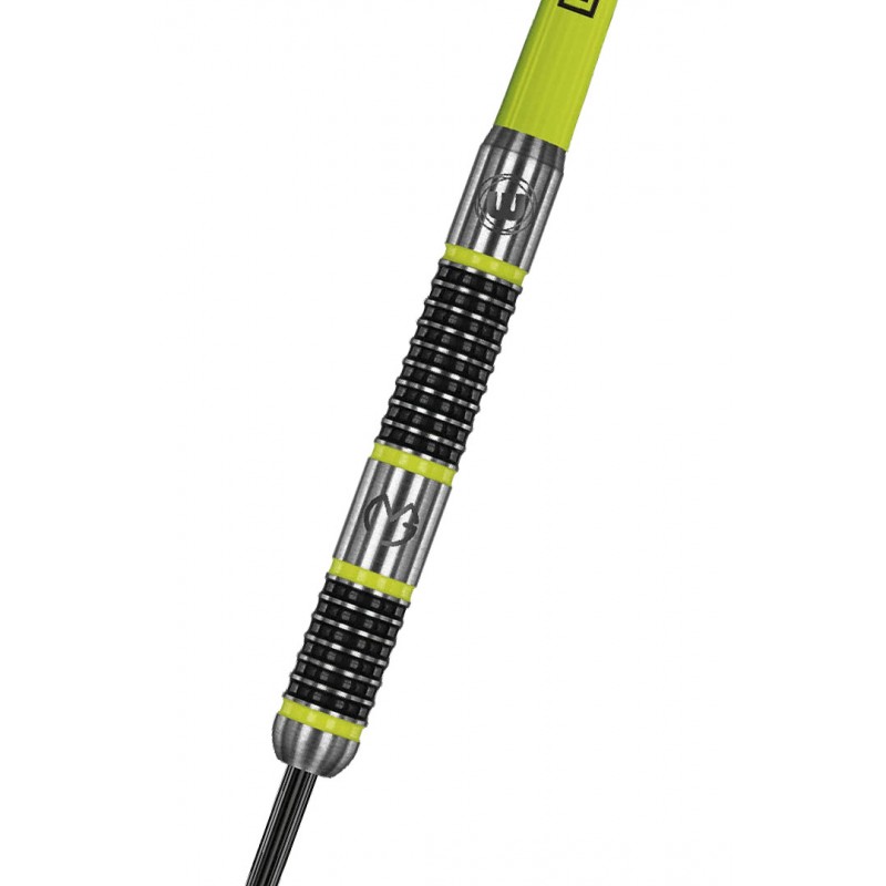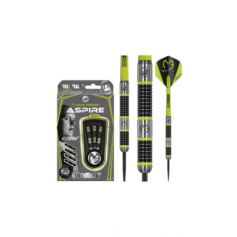 Los dardos MvG Aspire con un perfil moderno y elegante con patrones de agarre estratégicamente posicionados que replican los puntos de colocación de dedos preferidos de MvG, estos dardos ofrecen un control excepcional y un lanzamiento consistente tiro tras tiro. El acabado de contraste impresionante y mejora la visualización del agarre para una colocación de dedos más precisa.