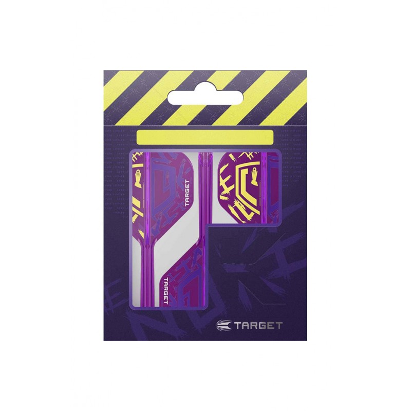 Voadores Target K Flex Neon. Geometria numero 6 desenho Luke Littler. Usando um sistema de molde de precisão para fundir a penas e hastes, as penas são altamente duráveis, porém leves, e continuam a mantê-las em um ângulo de 90 graus, garantindo um jogo consistente. Para reduzir a chance de salto, o K-Flex usa o sistema de torção patenteado da Target que move o dardo se for atingido por outro.